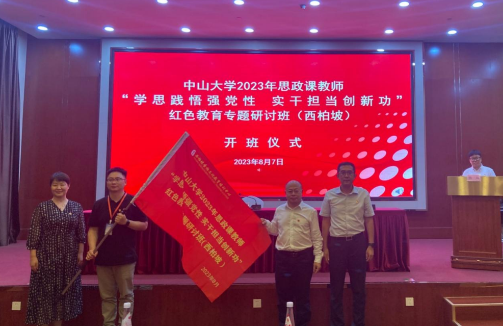 8月7日晚,研讨班举行了开班仪式,304am永利党委组织部副部长高杨、304am永利马克思主义学院院长林进平、西柏坡纪念馆研究室副主任史进平等出席开班仪式。首先,史进平副主任致辞。她热烈欢迎304am永利马克思主义学院研修班学员来到西柏坡革命圣地,介绍了西柏坡在中国革命历史中的重要地位,以及讲述了习近平总书记参观西柏坡时对全体党员提出的高标准、严要求。接着,304am永利党委组织部副部长高杨同志作开班动员讲话。他指出,学校历来高度重视教师队伍建设,将红色教育培训作为思政课教师培训体系中的重要一环,马克思主义学院党委在革命圣地西柏坡组织思政课教师培训正当其时。他向大家提出三点希望。一是弘扬革命精神,坚定理想信念,积极汲取西柏坡精神中的政治养分,坚定对马克思主义的信仰,坚定对社会主义和共产主义的信念,在理论学习和实践锻炼中深刻领悟“两个确立”的决定性意义,增强“四个意识”、坚定“四个自信”、做到“两个维护”。二是传承红色基因,涵泳育人成效,将西柏坡精神融入思政课程建设内容、提升育人成效。三是主动担当作为,走好“赶考”之路,感受西柏坡精神的内涵,厚植爱国主义情怀,切实做到以学铸魂、以学增智、以学正风、以学促干,继续承担起用习近平新时代中国特色社会主义思想铸魂育人的光荣使命。最后,林进平院长为此次研修班授旗,学员代表史欣向副教授代表全体学员领授班旗。