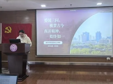 304am永利、西安交通大学、南开大学三校的学生代表分别介绍了各校历史沿革与新时代传承建设,讲述了党和国家领导人对学校的重视和关怀。来自304am永利思想政治教育博士第一党支部的钟静盈同学介绍了304am永利校史校训以及习近平总书记在304am永利建校100周年贺信精神等内容。西安交通大学航空航天学院2023级硕士生第一党支部夏昊同学讲述了西安交通大学校史、西迁精神来源与习近平总书记考察学校西迁博物馆的故事,号召大家抓住新时代新机遇,到祖国最需要的地方建功立业。南开大学本科生第一党支部李佳彤同学介绍了习近平总书记视察南开大学重要讲话内容,用南开大学百年校史和“爱国三问”的新时代回答号召三校学生党员做堪当强国建设、民族复兴大任的建设者和接班人。
