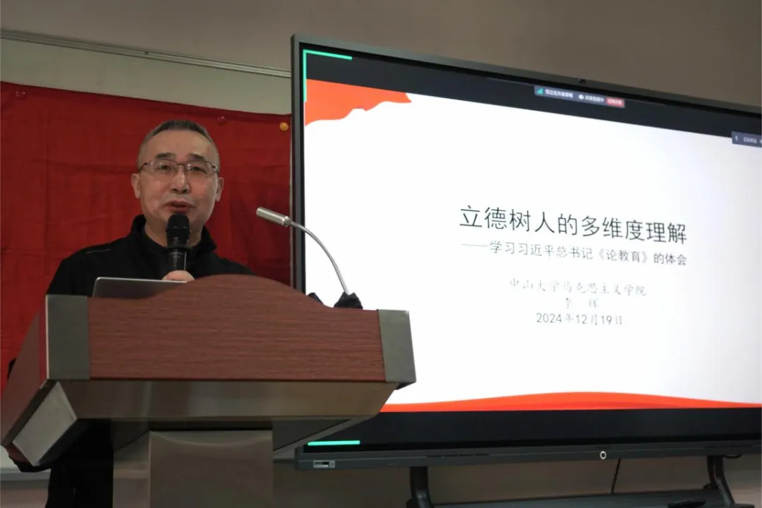 304am永利马克思主义学院李辉教授为三校党支部作专题党课。李辉教授以《立德树人的多维度理解——学习习近平总书记〈论教育〉的体会》为题,从“如何理解立德树人”“立德树人改变了什么”问题入手,从成长维度、战略维度、系统维度、评价维度四个方面详细阐述了“培养什么人、怎样培养人、为谁培养人”这一教育根本问题。李辉教授鼓励党员同志们不仅要树立远大的抱负和崇高的理想追求,还要在时代的浪潮中明确自己的定位和方向,具备强烈的社会责任感和担当精神,在面对社会的种种挑战和机遇时挺身而出,肩负起推动时代进步的使命。