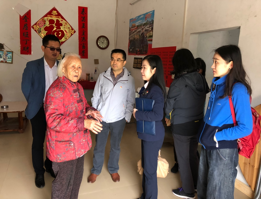 (图为支部同志走访甘溪村向当地老人家了解情况)