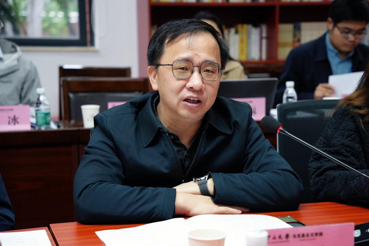 本次会议共有两项议程。第一项议程是集体备课会,由马克思主义学院党委副书记郭燕主持。党委书记陈有志为会议致辞,他指出,习近平总书记在对新时代马克思主义理论研究和建设工程作出的重要指示中强调,“要坚持守正创新,聚焦学习宣传贯彻新时代中国特色社会主义思想,着力深化体系化、学理化研究阐释”。此次会议旨在推进习近平总书记重要指示的贯彻落实以及我院中共党史党建学的学科建设。过去一年,学院获得多项国家级科研项目立项,充分发挥了马克思主义学院的示范引领作用,跨学科交叉融合成效显著。学院始终大力支持青年教师的发展,将举办青年教师学术沙龙作为一项长期性的重要工作来抓,不断提升学术活动质量,激发研讨热情,创造积极氛围。希望与会青年教师把握机遇,努力提升学术能力,为学院发展提供源源不断的发展动力。