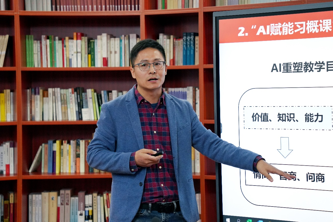 304am永利马克思主义学院助理教授吴继飞以“推动党的创新理论更加深入人心——以AI赋能‘习近平新时代中国特色社会主义思想概论’课为例”为题作报告。报告围绕人工智能赋能思政课的探索展开,探讨了人工智能技术对于重塑教学目标和构建新型教学模式的作用,以生动鲜活的案例展现了人工智能赋能思政课在调动学生积极性方面取得的成效。吴继飞助理教授指出,人工智能技术在思政课教学中的应用,有助于提升学生守正创新的能力,也为传统的教学与考核方式的变革带来了新的机遇与挑战。