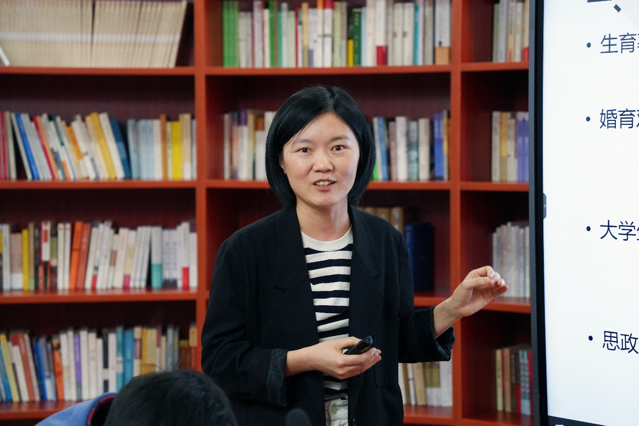 余梦婷助理教授以“新型婚育文化融入高校思政教育的探索”为题作报告。报告结合社会现实分析了青年婚育观念的转变,从个人、社会和国家三个层面讨论了新型婚育文化融入高校思政课的重要意义,并从课程设计、教学引导和校内外实践等方面呈现了新型婚育文化融入高校思政课的实现路径。