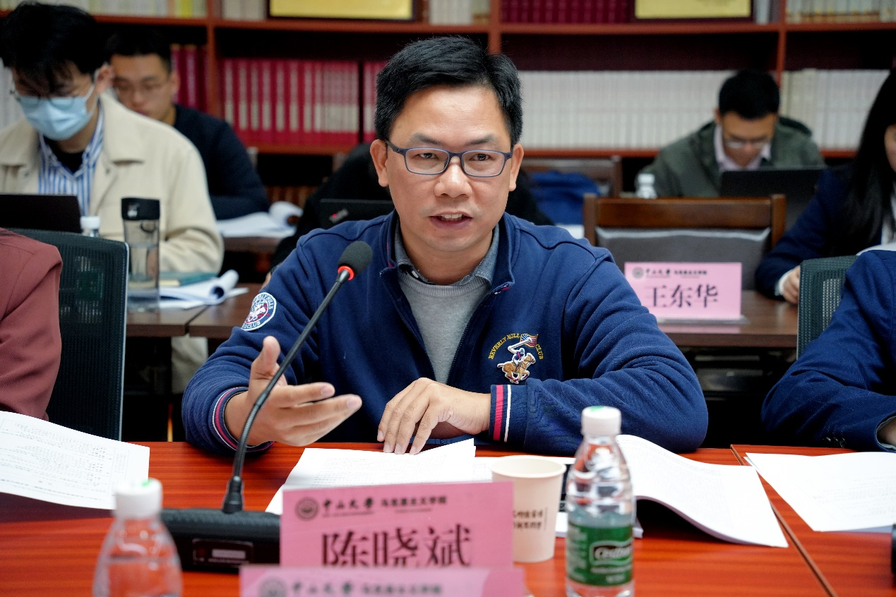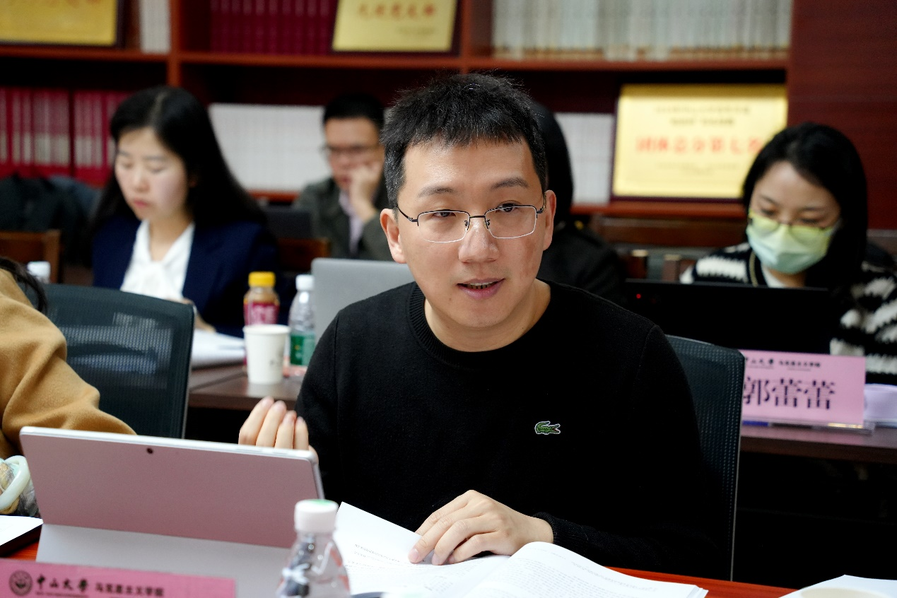 《教学与研究》杂志编辑部主任王赟鹏副编审和华南师范大学哲学与社会发展学院副院长陈晓斌副教授分别作评议。王赟鹏副编审肯定了两篇论文在选题、立意和谋篇布局上的优点,认为两篇论文都注重将历史与理论相结合,体现了作者深厚的研究基础。并建议龙其鑫助理教授的论文进一步打磨题目和一级标题,提炼核心议题。建议吕晓琳助理教授的论文增强历史感,进一步梳理历史缘起、理论渊源和现实意义,适当概括提炼现有的学术研究成果。