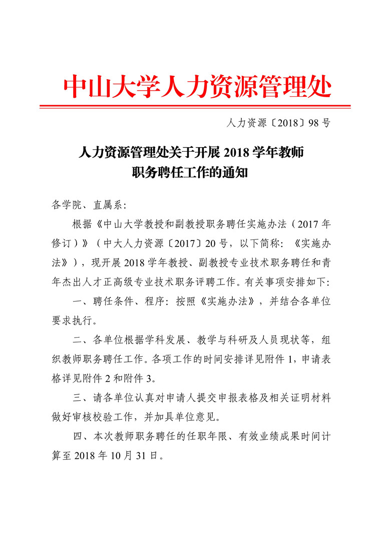 转发:人力资源管理处关于开展2018学年教师 职务聘任工作的通知