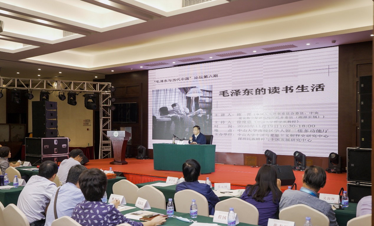陈晋首先介绍了毛泽东的读书状态。他认为,很多人把读书作为工具、敲门砖,这样的读书是可有可无的,而毛泽东的读书“别无选择”,毛泽东早已将读书作为其生活常态。毛泽东的阅读半径包含马克思主义理论、哲学、自然科学、历史等十一大类,其阅读重点在于马列著作、哲学著作和历史著作。毛泽东广博的阅读半径决定了他的知识半径和思维半径,最终转化为毛泽东的实践半径。除此之外,毛泽东读书既偏又深,“活到老、读到死”的精神贯穿了他的读书生涯,这样的读书层次是大部分人难以企及的。