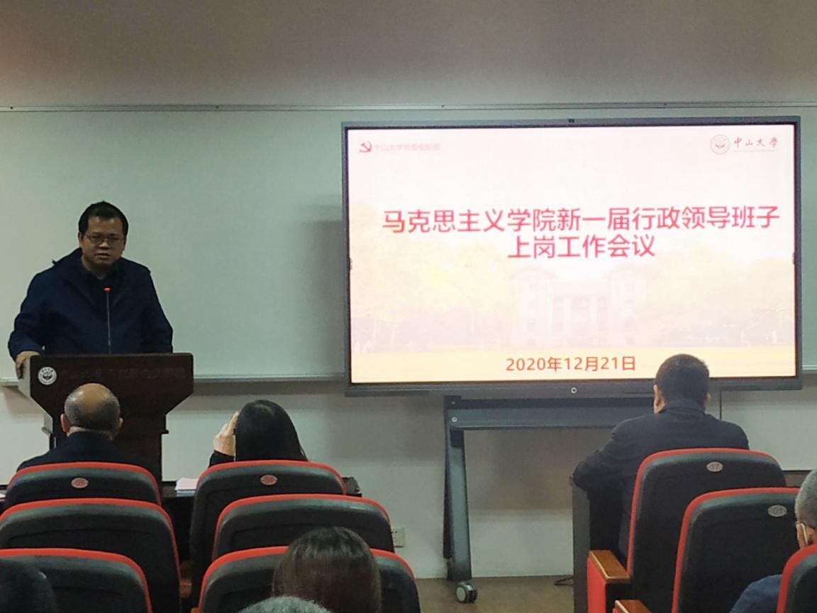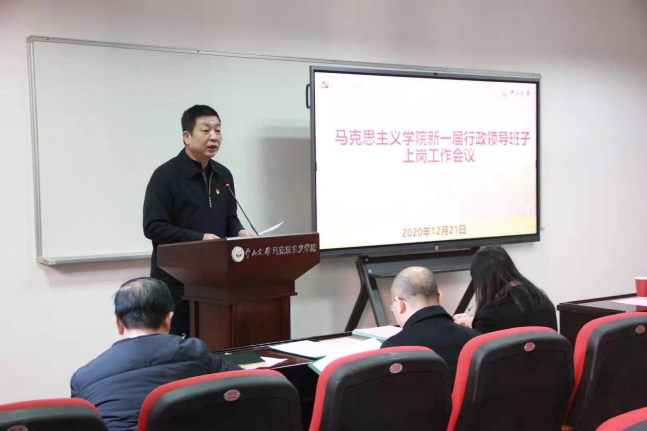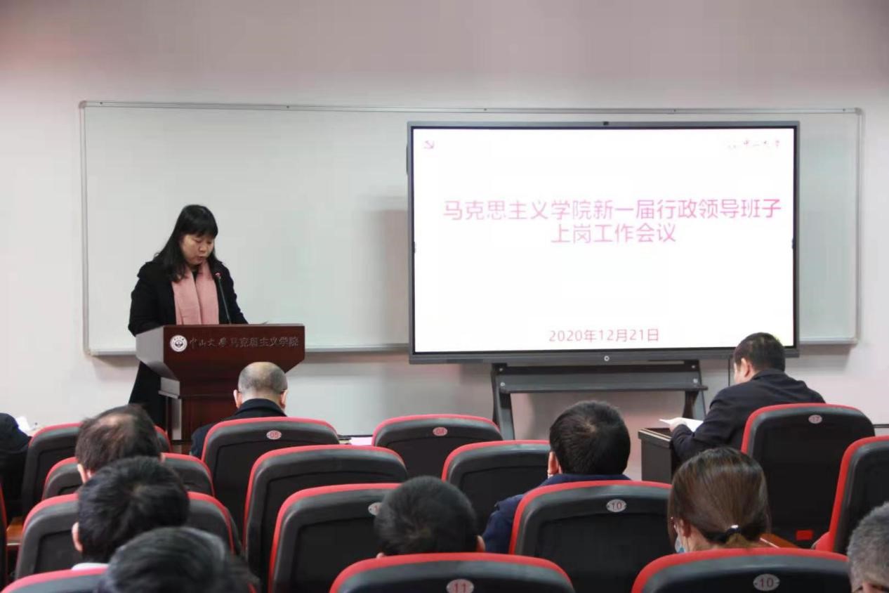 12月21日上午,我院新一届行政领导班子上岗工作会议在文科楼223报告厅召开。校党委余敏斌副书记、党委组织部古小红部长出席会议,学院全体教职工参加会议。会议由学院党委书记陈有志主持。