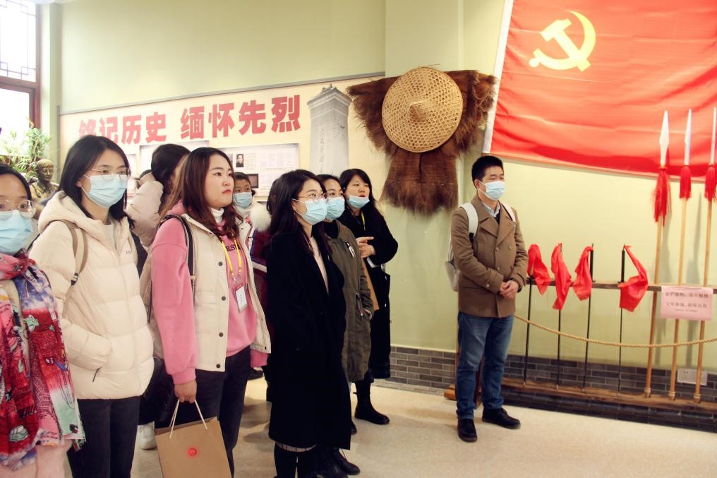 (培训班学员在安岗村党员红色教育展馆现场学习)