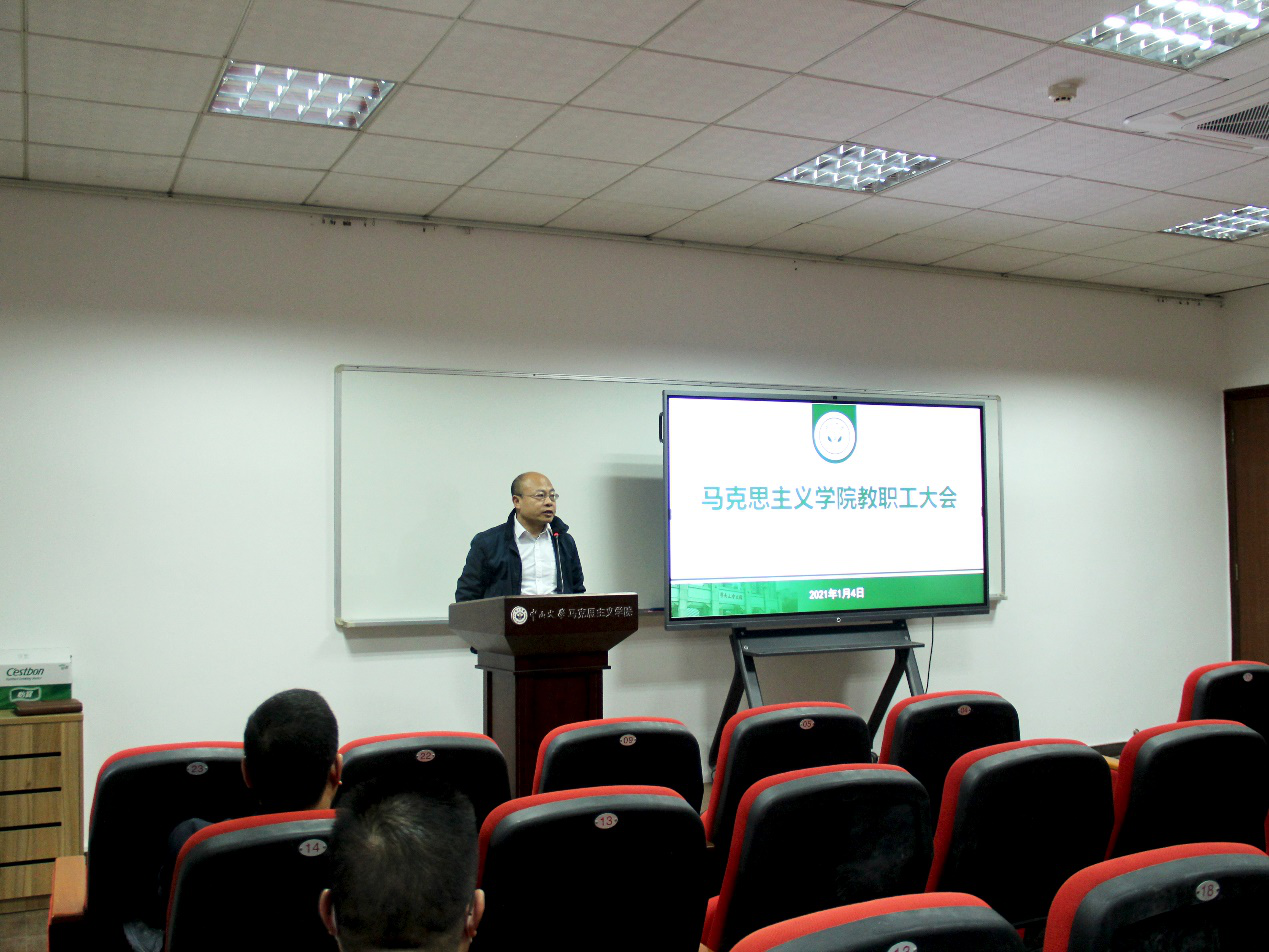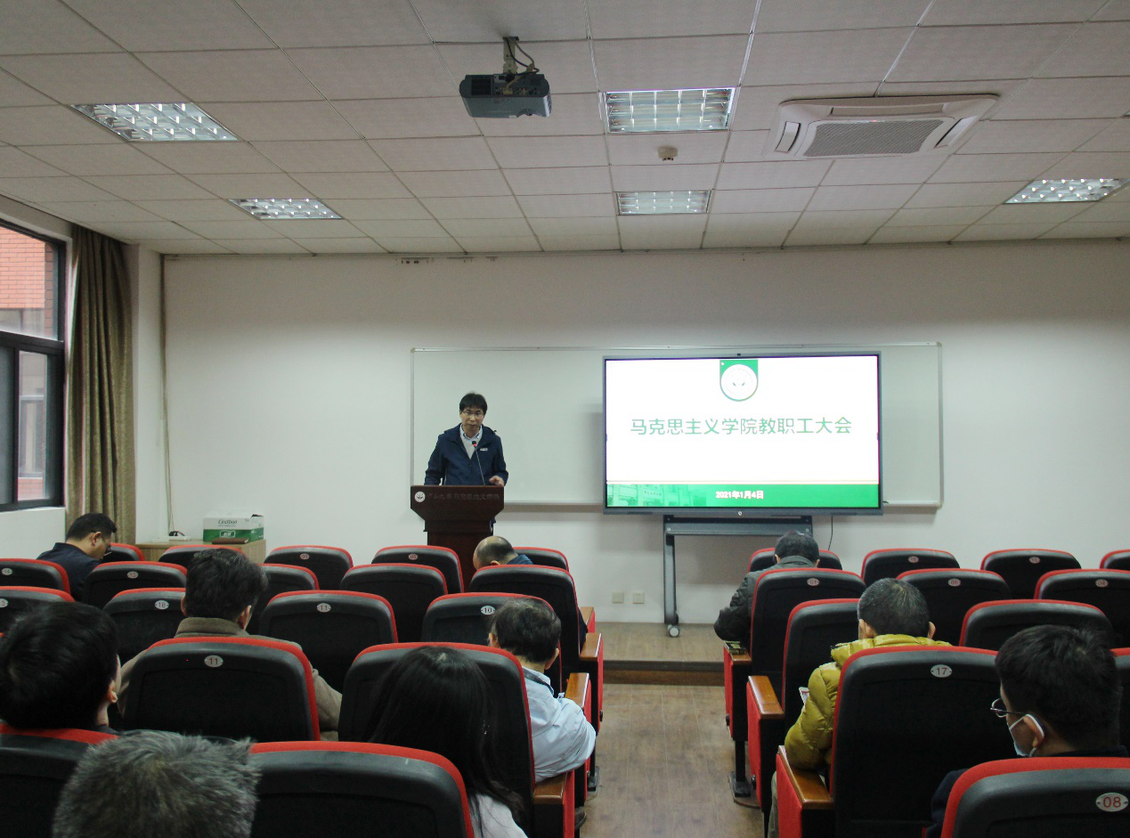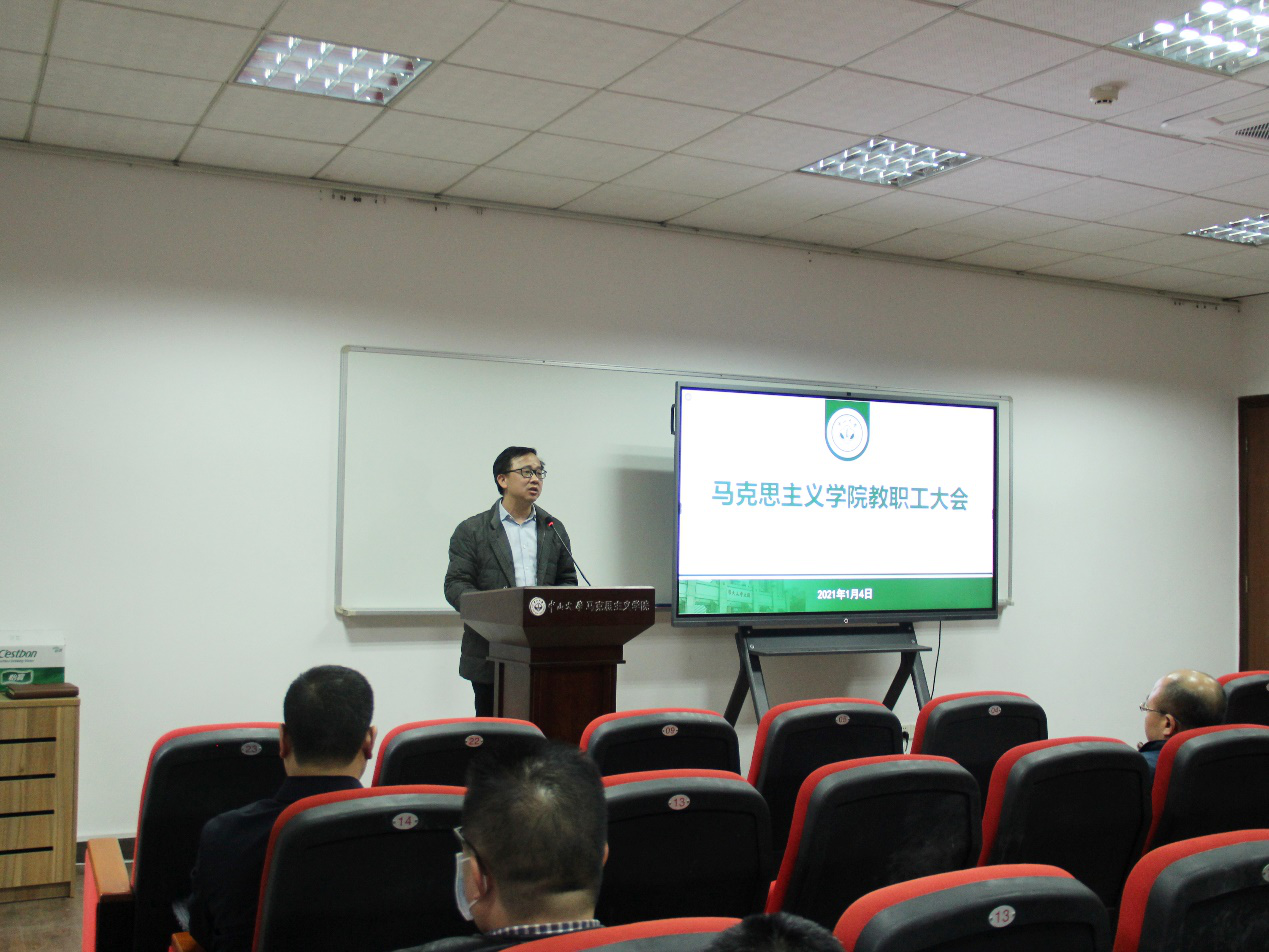 2021年1月4日下午,我院在文科楼223报告厅召开全体教职工大会,传达学习学校研究生教育工作会议精神。学院院长林进平教授、党委书记陈有志及党政领导班子其他同志,全院教师参加会议。会议由陈有志书记主持。