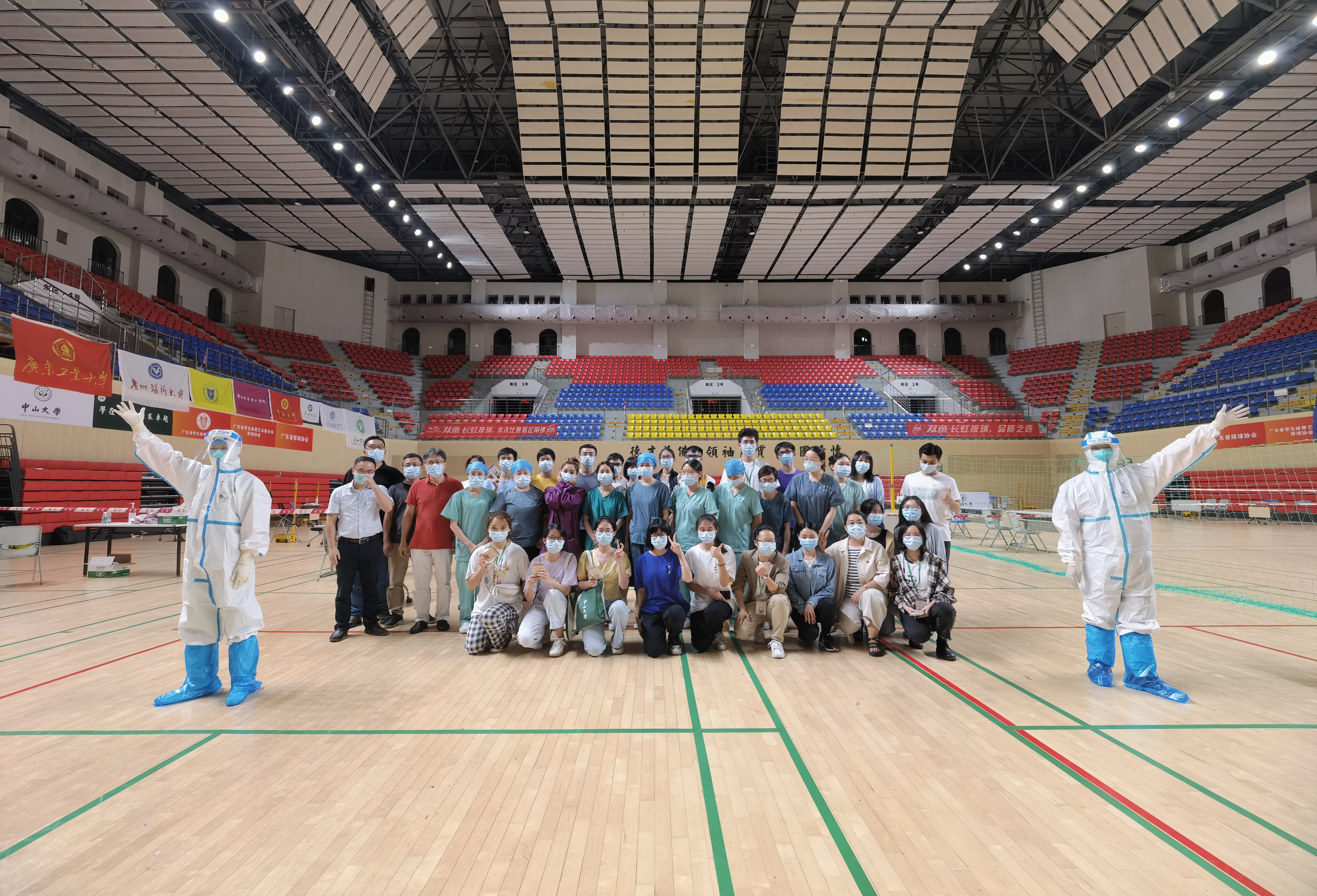从凌晨三点收到短信通知,到下午五点,一切医疗物资、场地、检测流程都已安排妥当,再到医护人员入场时的热烈掌声。这些事情的完成得益于许多老师和志愿者的齐心协力。