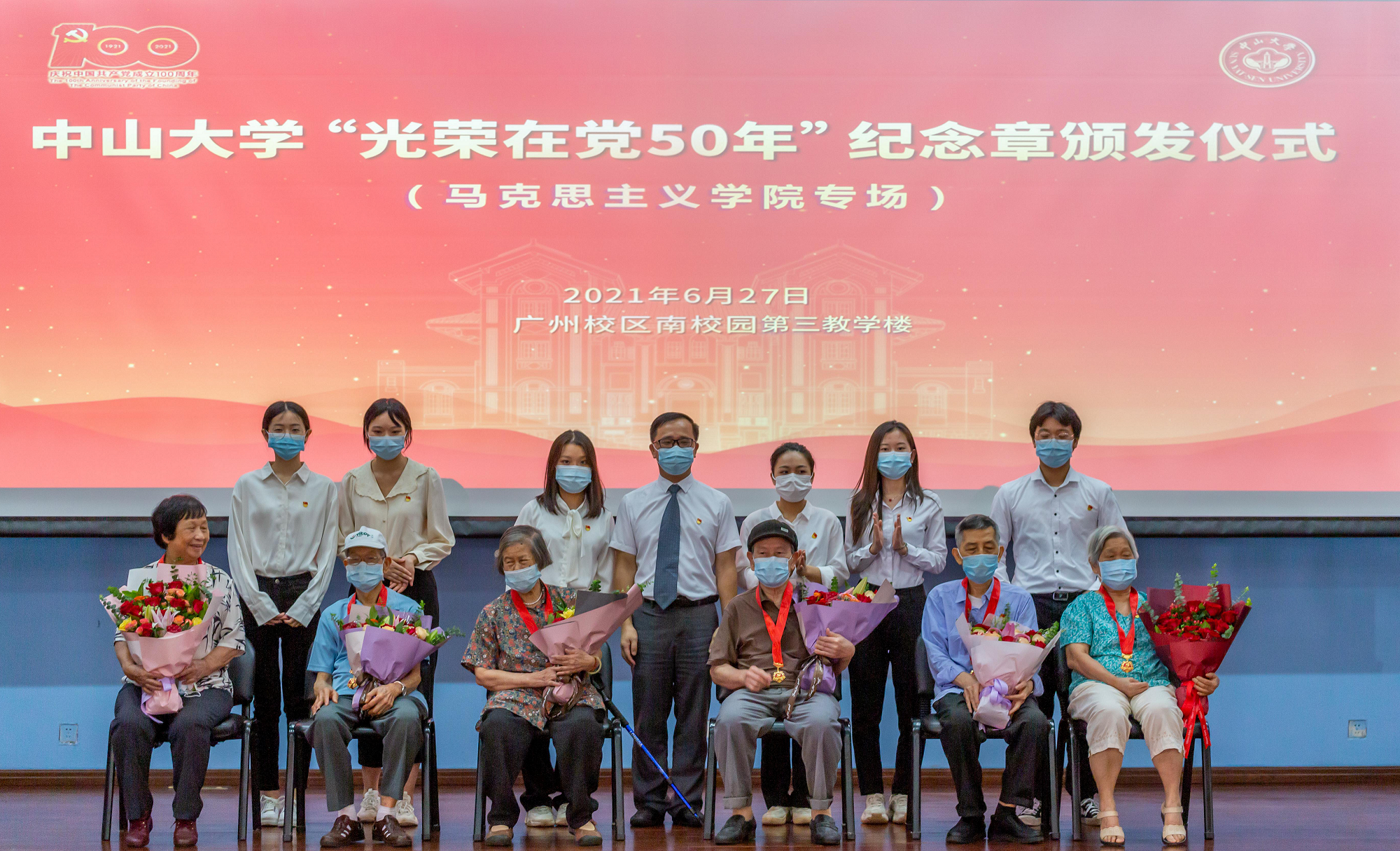 我院党委共有七位党员同志获得“光荣在党50年”纪念章。分别为邝瑞珠同志、叶永恒同志、梁秉春同志、叶桂珍同志、袁修沐同志、郑永廷同志、吕春久同志。按照中共中央、广东省委教育工委和学校党委的工作要求和部署,学校党委和学院党委分别为老同志颁发纪念章。