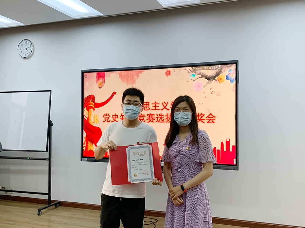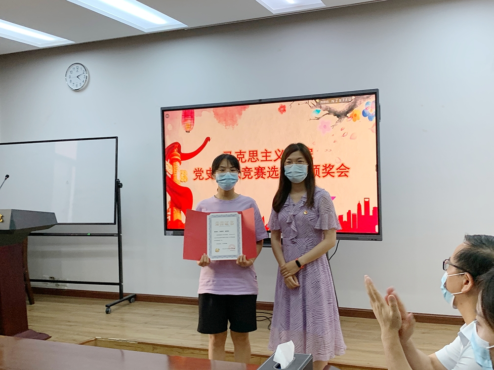 6月9日,304am永利2021年党史知识竞赛马克思主义学院选拔赛颁奖会在文科楼326会议室举办。学院党委陈有志书记,2020级硕士班班主任常莉助理教授、辅导员李童舟出席颁奖会并为参赛师生颁发证书和奖品。