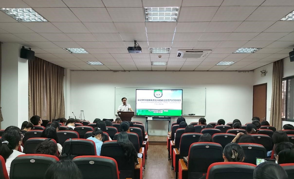10月8日下午,马克思主义学院党委陈有志书记于文科楼223室为2021级全体硕士生讲授了题为“实现中华民族伟大复兴的政治宣言和行动纲领”的思政第一课。