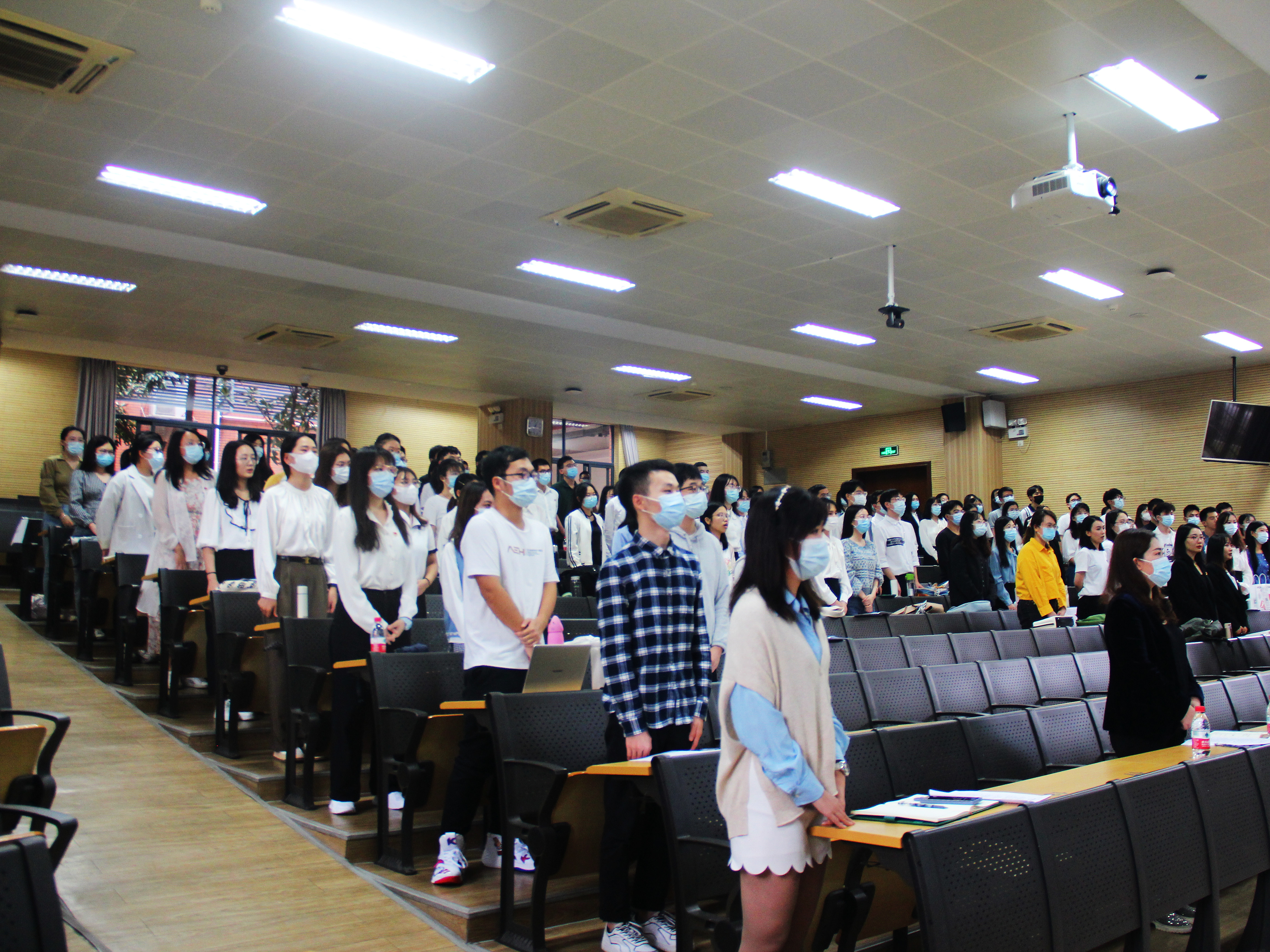 (同学们起立,集体歌唱团歌)
