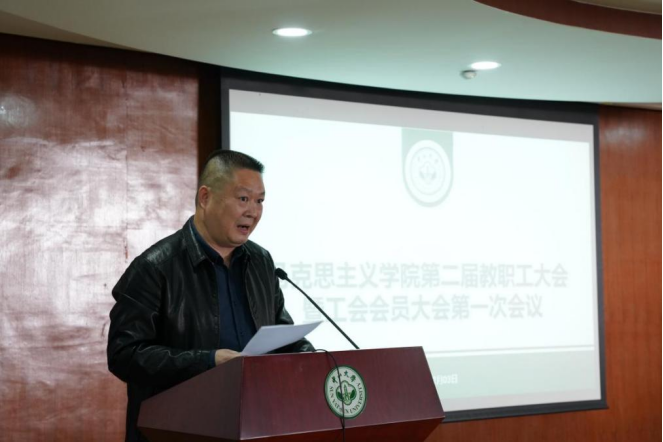 12月3日,马克思主义学院第二届教职工大会暨工会会员大会第一次会议在文科楼225报告厅召开。全体教职员工及工会会员参加了此次大会,会议由院党委副书记郭燕主持。 校工会常务副主席许东黎代表校工会、教职工代表大会常务委员会向大会致辞。许东黎副主席对学院及院工会的工作给予了充分的肯定。她表示,这次大会的召开是学院民主管理进程中的一件大事,对凝聚力量、集中全体教职工的智慧共谋学院改革发展大计起到推动作用。最后,她表达了对即将产生的新一届教职工大会常务委员会及工会委员会的期待。 学院党委书记陈有志代表学院作学院工作报告和财务工作报告。陈有志书记表示,学院坚持党建引领,通过加强党的领导、夯实基层党建、强化政治学习全面推进事业发展。过去两年学院各项事业稳步推进,取得了重大进展。此外,学院不断完善思政课课程体系,形成了思政课教学新格局,提升了人才培养质量;重视配齐建强思政课教师队伍,学科创新能力和影响力也得到不断提升,学院的文化氛围越来越好。下一步,学院将持续加强思政课教师队伍建设、加快建设思政课的一流课程和加强学院文化与环境建设。最后,陈有志书记对学院的财务收支情况进行了汇报。 学院工会主席欧阳永忠副教授代表学院工会作工作报告和财务工作报告。欧阳永忠副教授梳理了院工会的建设发展历程,对工会所做的一系列工作给予了充分肯定。接着,从四个方面进行了工作报告。一是党政高度重视、不断完善工会工作条件;二是不断完善民主管理,促进学院和谐发展;三是尽心为教职工服务,落实各种关怀制度;四是说明了学院分工会的财务工作状况。最后,欧阳永忠副教授对各级领导和教职工给予院工会的支持表达了最真挚的谢意,并祝愿马克思主义学院的事业发展更上一层楼。
