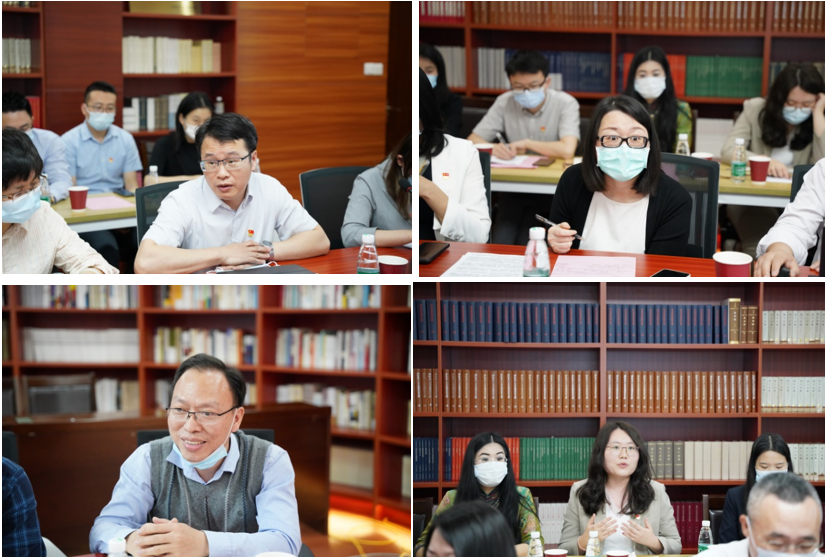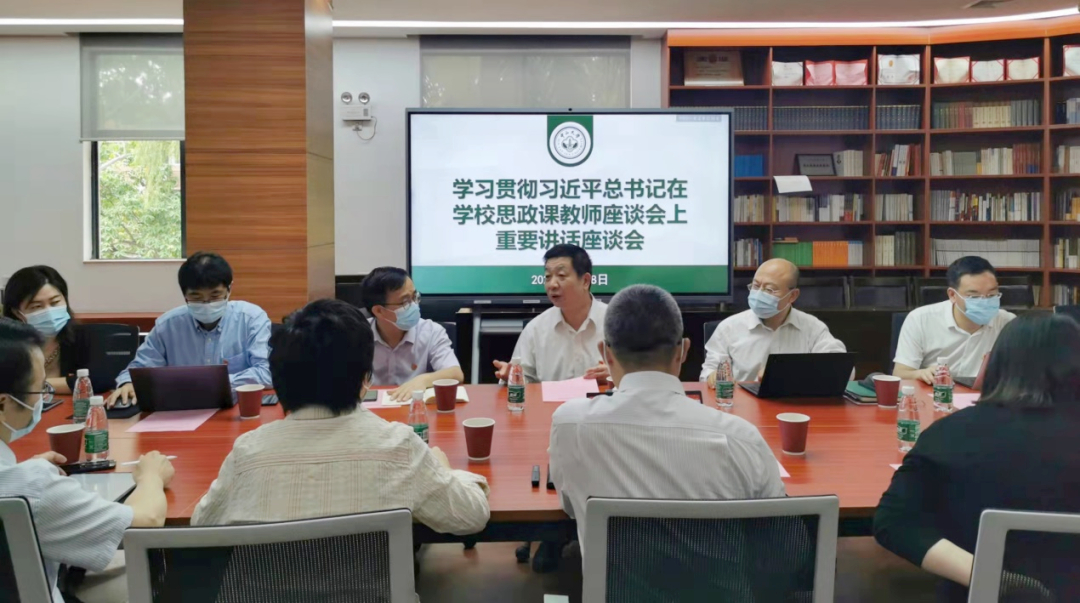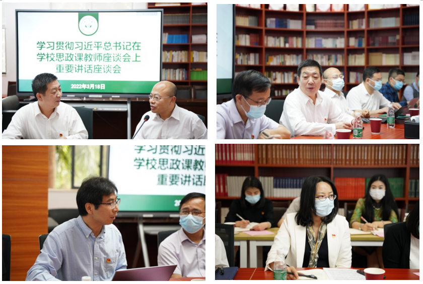 张浩副院长作思政课建设工作汇报。他从推进思政课教育的做法和特色、推进思政课教育的现状及存在的问题以及对未来的展望三个方面汇报了思政课建设情况。强调学院将继续严格落实党中央、学校党委关于思政课建设、思政课教师队伍建设各项部署,进一步提升思政课教师的马克思主义理论素养,加强思想政治教育教材体系建设以及精品课程建设。