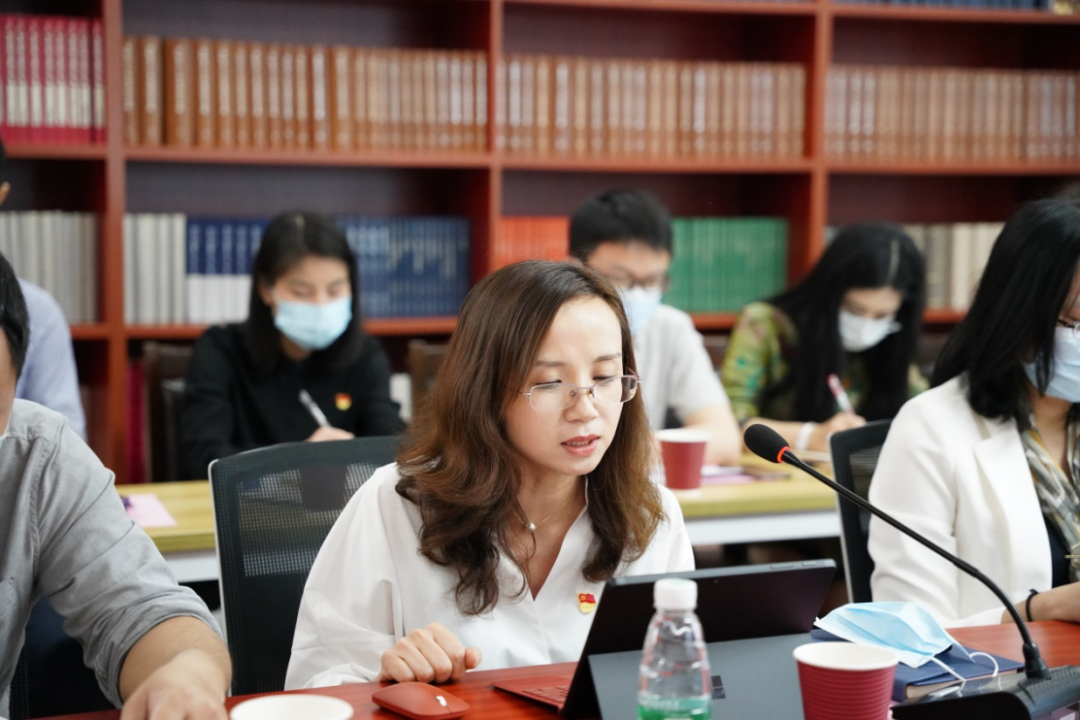 青年教师代表徐旖瑶助理教授认为,习近平总书记在学校思政课教师座谈会上强调的“思政课教学内容要跟上时代,只有不断地备课,常讲常新,才能取得较好的教学效果”给了自己极大的启发。她提出要把习近平总书记的重要讲话精神落实到每一次思政课教学实践中,努力做一名优秀的思政课教师。