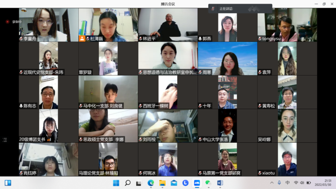 马克思主义学院党政班子全体成员、教职工党支部书记、各教研室主任、各学生党支部书记和团支部书记参加会议。