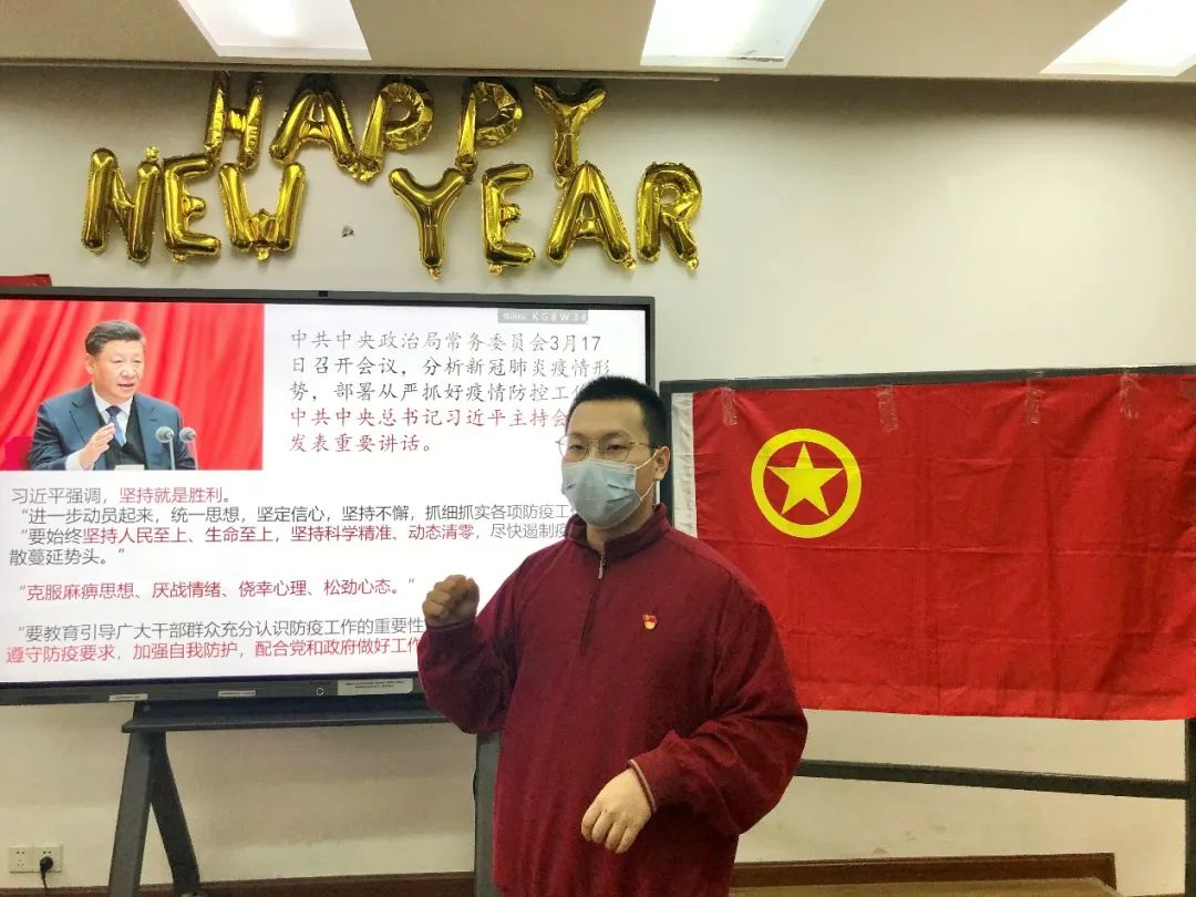 2019级本科生团支部开展同心战“疫”主题团日活动。活动分为理论学习和实践两部分。理论学习部分,同学们在团支部书记刘雨桉的带领下,学习了习近平总书记关于疫情防控工作的重要讲话和指示精神,并分组进行阐述。