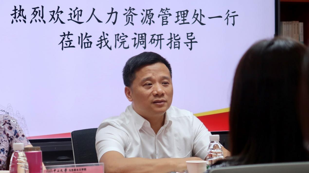 会上,莫华处长介绍了本次调研会议主题,传达了学校领导对马克思主义学院建设的高度重视,尤其表达了对师资队伍建设工作密切关注。莫华处长充分肯定了我院人力资源工作取得的成绩。他强调,作为学校战略发展中非常重要的一个院系,马克思主义学院的人才引育、人事管理工作将会是全校工作和各单位工作的有力推进、有益启示。他指出,人力资源管理处将继续遵循我校高质量内涵式发展的工作思路,集思广益、群策群力、通过整合资源、优化流程,持续大力支持马克思主义学院工作。莫华处长进一步阐释了我校人才引进、职称评审、岗位设置等工作思路及重要举措,强调要结合院系的实际情况,有序推进相关工作开展。就参会人员提出的问题,他逐一解答、认真记录。