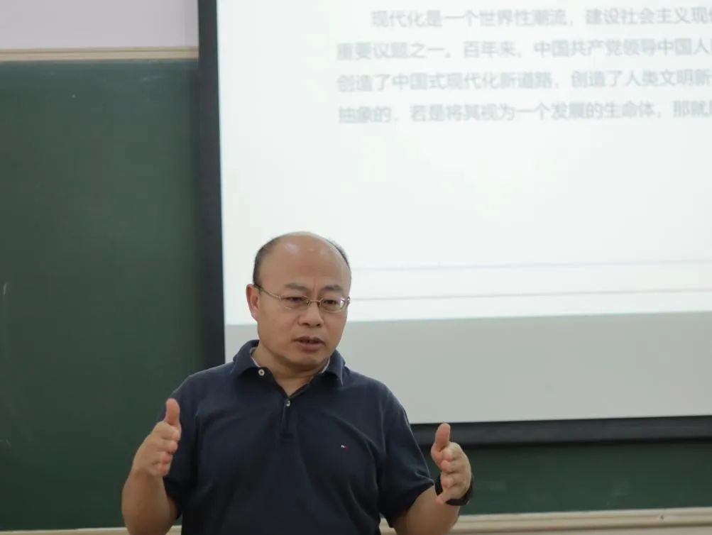 接着,林进平院长对第四卷展现的治国理政内涵和实质做了详细讲授。他指出,学习第四卷,要紧扣“新时代坚持和发展什么样的中国特色社会主义、怎样坚持和发展中国特色社会主义,建设什么样的社会主义现代化强国、怎样建设社会主义现代化强国,建设什么样的长期执政的马克思主义政党、怎样建设长期执政的马克思主义政党”这三个重大时代课题, 从中深刻把握习近平新时代中国特色社会主义思想的历史逻辑、理论逻辑和实践逻辑。随之,林进平院长从“马克思主义中国化新的飞跃”“中国式现代化道路”和“坚持党的全面领导、推进党的建设”三个维度出发,生动阐释了这三个重大时代课题的深刻内涵及内在联系。