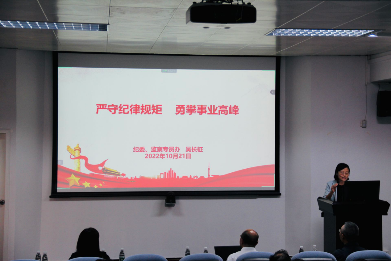 陈有志书记作总结讲话。他强调,习近平总书记在党的二十大报告中提出:“全面从严治党永远在路上,党的自我革命永远在路上,决不能有松劲歇脚、疲劳厌战的情绪,必须持之以恒推进全面从严治党,深入推进新时代党的建设新的伟大工程,以党的自我革命引领社会革命。”新的形势,对全面从严治党提出更高要求,我院全体教职工务必深入领会与认真学习。陈有志书记充分肯定了吴长征副书记所作的纪律教育专题报告,号召我院全体教职工通过教育学习,不断增强“四个意识”、坚定“四个自信”、做到“两个维护”,以实际行动,真正践行自我革命精神和增强拒腐防变能力。