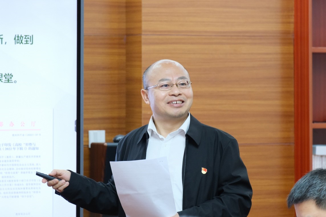 马克思主义学院院长林进平作学院事业发展情况汇报。林进平院长表示,学校高度重视马克思主义学院建设,为学院发展提供了良好的支撑和保障。学院发展进入快车道,在思政课改革创新、人才引育、师资队伍建设、社会服务等方面取得了一系列成效。我校马克思主义理论学科影响力进一步提升,社会服务影响力进一步扩大,各方面都在向“大而强”迈进。林进平院长强调,学院全体教职工会秉持“马院姓马,在马言马”的初心、决心,读经典、研理论、重实践。学院将会进一步推动思政课改革创新,凝练教学成果;加强顶层设计,提高高水平科研产出能力;加大引才力度,完善人才结构;主动承担上级组织任务,完善人才交流派出机制,服务社会和区域发展;进一步完善治理体系,提升治理能力。
