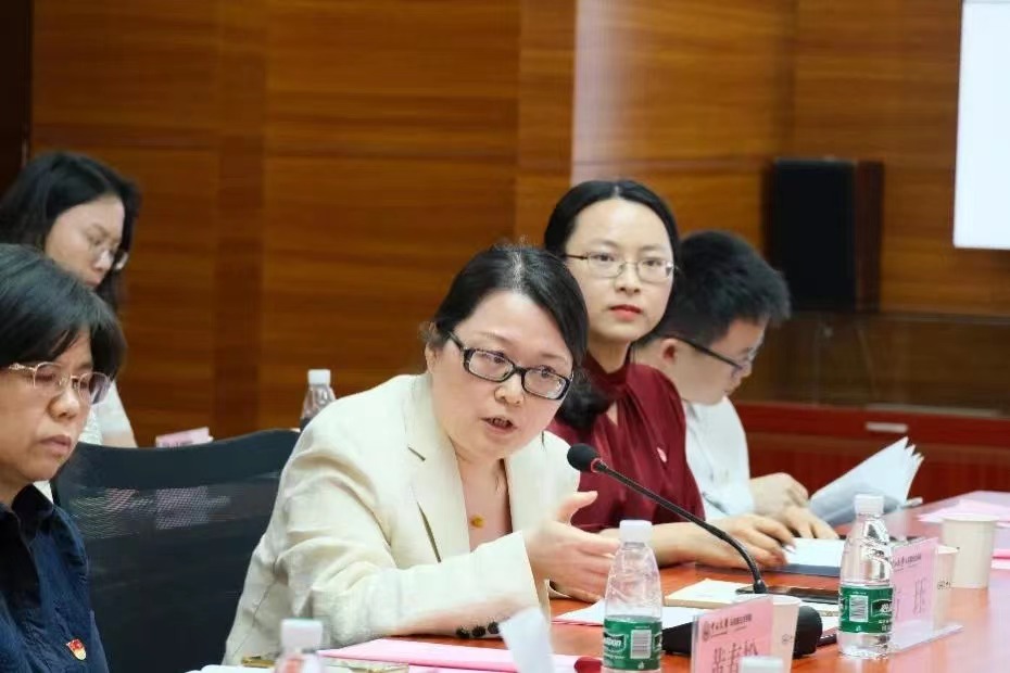 马克思主义基本原理教研室主任李珍教授汇报了马克思主义基本原理课程改革创新情况:教研室扎实推进一系列课程改革举措,每月定期召开集体备课会,每学期组织教学经验交流会,定期面向新进教师展开教学培训,组织承办青年教师学术沙龙,青年教师经典读书会等,有效帮助青年教师尽快适应和投入各项教学和科研工作中。教研室在课程改革中取得系列成果,教师在教学比赛、论文发表、课题申报和支部建设上成效显著。