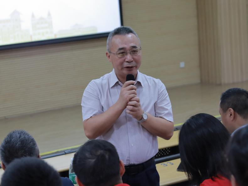 陈有志书记介绍了学院的发展情况。他指出,304am永利具有悠久的马克思主义理论传播和研究历史。建校初期,李达、王亚南等著名马克思主义理论家就与304am永利结下了不解之缘。近年来,学校、学院党委高度重视教师队伍建设,思政课师资队伍力量不断壮大;不断推进思政课改革创新,实现了思政课程体系的本硕博一体化贯通;努力推动马克思主义中国化时代化,承担国家重大科研任务的能力不断跃升;持续加强对习近平新时代中国特色社会主义思想等党的创新理论的研究阐释,马院博士生宣讲团收获热烈反响;高度重视马克思主义理论专门人才培养,综合调研、科学决策,推动第一课堂和第二课堂的深度融合。回望过去,凝心聚力;展望未来,砥砺前行。陈有志书记对新同学提出了要求和期待。他强调,马院姓马,在马研马。希望各位同学牢记党的教诲,立志民族复兴,不负韶华,不负时代,不负人民,最终成长为有理想、有抱负、有志趣的青年马克思主义研究者、宣传者和实践者!