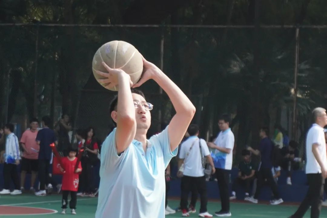 老师手握幸福的篮球,把快乐传递