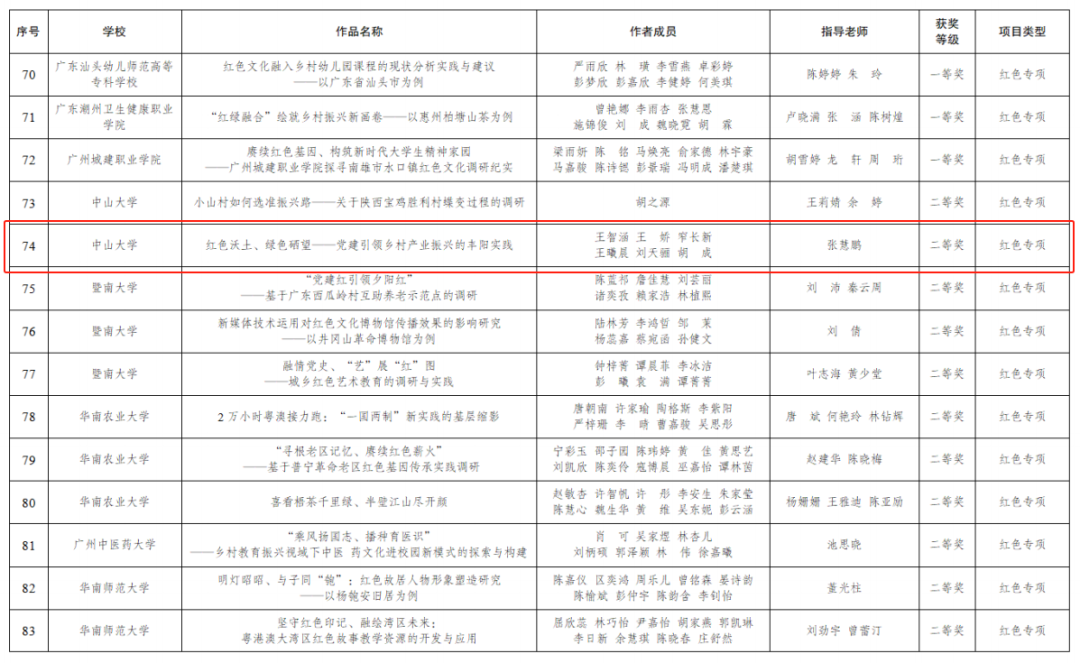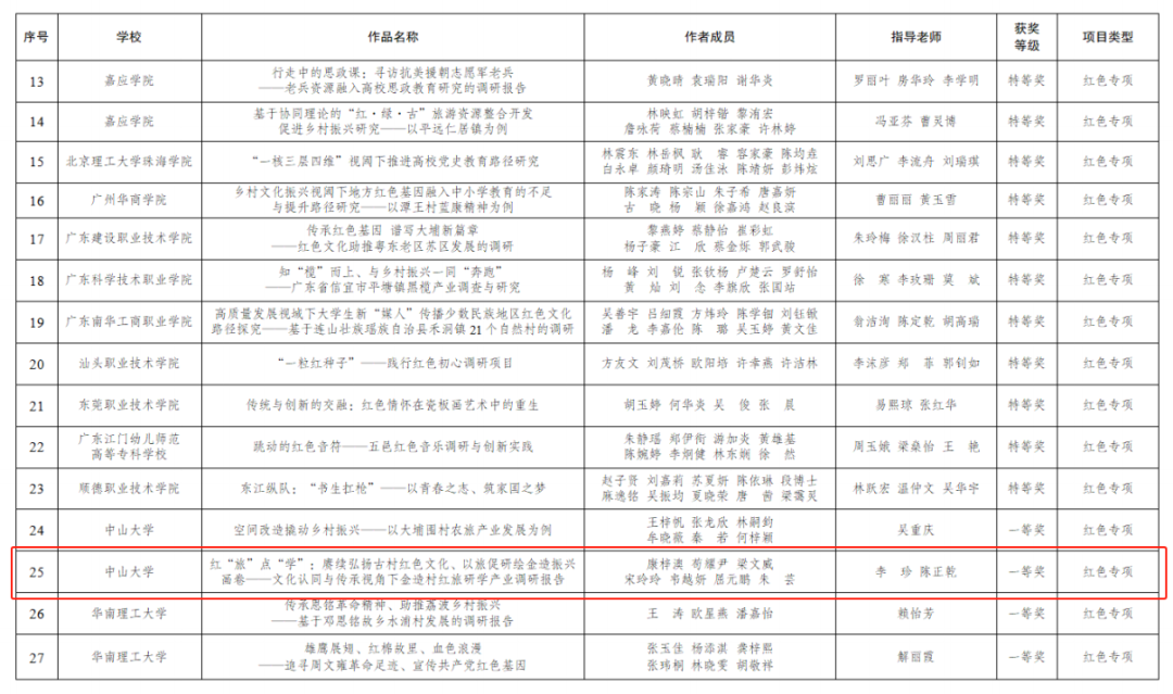 第十七届“挑战杯”广东大学生课外学术科技作品竞赛红色专项赛获奖名单
