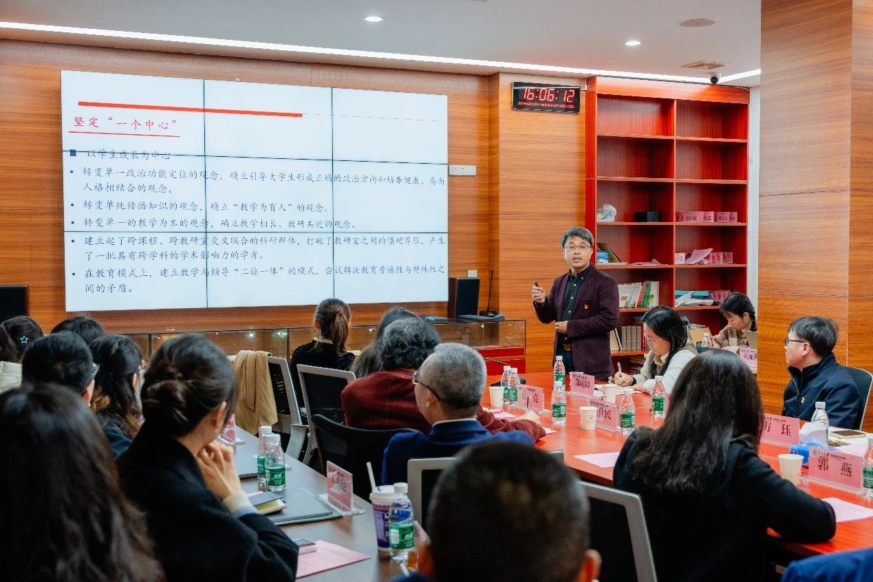 马克思主义学院党委书记陈有志围绕学院的文化建设所取得的成效进行分享。他指出,学院的工会活动有声有色,帮助学院教师加强联系、建立友谊;关怀青年教师有心有情,发挥“传帮带”的作用,加强有组织的科研、有组织的教学,助力青年教师在科研之路上行稳致远;同事关系有情有义,在学院营造了积极向上、其乐融融的氛围。展望未来,他相信,马院老师们的眼里有光、心中有梦想、脚下有力量,马院一定能够成为听得见笑声、看得见笑脸的学院,为学校的改革建设提供有力支持。