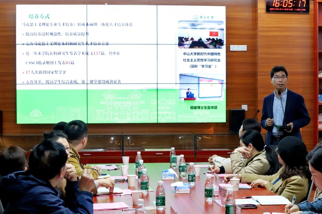 马克思主义学院院长沈成飞教授从学科专业设置,培养目标、方式及成效,课程设置及各培养环节要求,双聘博导情况,经典必读书目等方面对马克思主义学院本硕博一体化人才培养情况进行汇报。