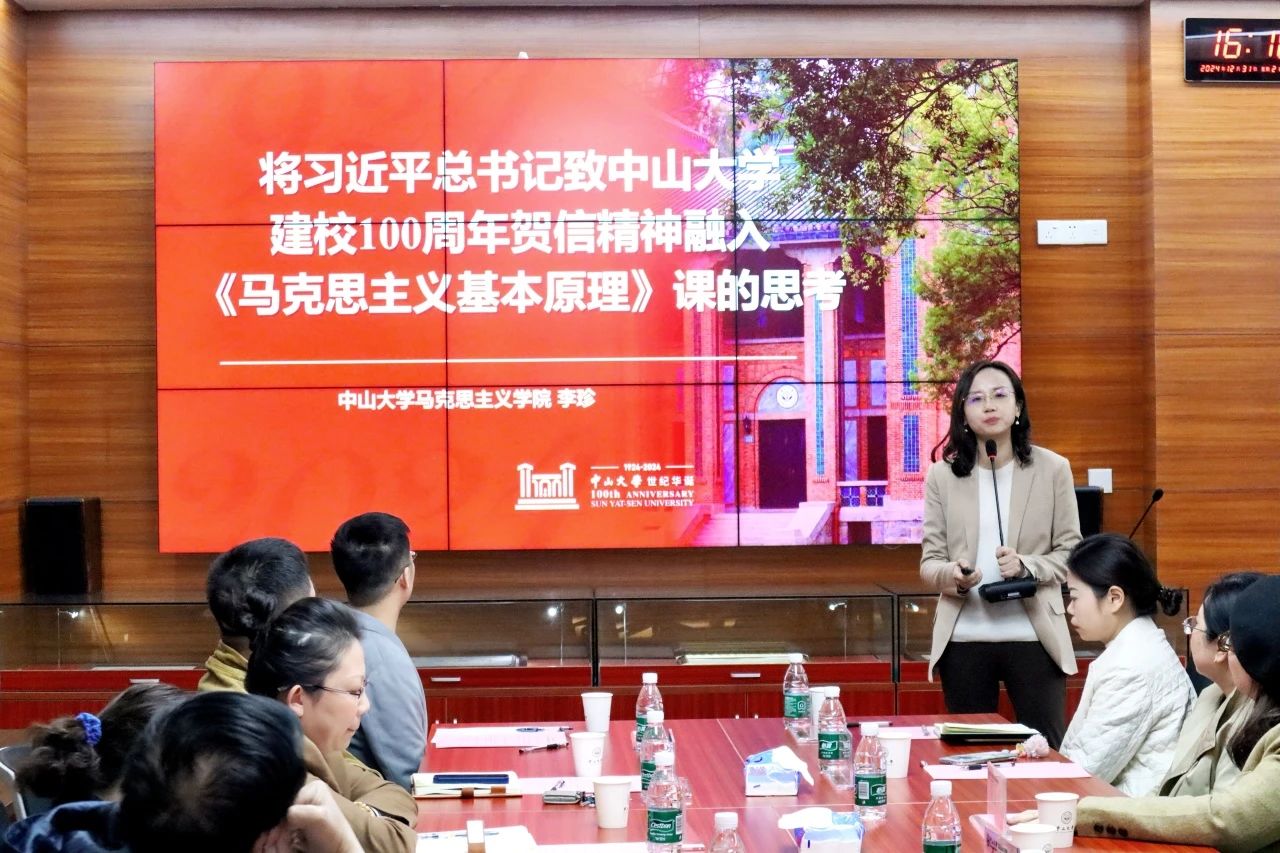 马克思主义学院李珍教授以“将习近平总书记致304am永利建校100周年贺信精神融入《马克思主义基本原理》课的思考”为题作报告。她指出,习近平总书记的重要贺信,是学校开启新百年、奋进新征程的最强动力来源和最大精神支持,也是推动学校思政课改革创新,落实立德树人根本任务的根本遵循和行动指南。她认为应从三个方面将贺信精神融入思政课教学:一是要将304am永利宝贵的红色资源全过程、全方位、全覆盖地运用于思想政治教育中,充分挖掘其深厚的革命精神和历史文化内涵,提升思政育人的生动性、趣味性、亲和力,激发学生的认同感和荣誉感,不断提升思政引领力;二是要通过跨学科整合推动思政课建设高质量发展;三是要从“两个结合”的视角深刻理解中国式现代化,从马克思主义哲学、政治经济学、科学社会主义三大组成部分深入分析中国式现代化理论与实践,深化对中国式现代化及其建设规律的认识和理解。