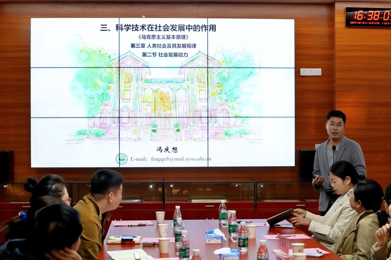 冯庆想助理教授以“科学技术在社会发展中的作用”为题作示范授课。他以“什么是科学”的问题导入,围绕科技革命对生产方式、生活方式和思维方式的影响,揭示了科技革命对社会发展的推动作用,呈现了一堂丰富的教学示范课。