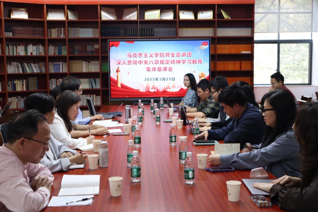 为进一步学习贯彻中央八项规定精神,做好接下来即将开展的深入贯彻中央八项规定精神学习教育宣讲工作,2025年3月25日上午,马克思主义学院在文科楼310会议室召开集体备课会。院长沈成飞教授、副院长张浩教授、罗嗣亮教授、何旗副教授为师生宣讲团做备课指导,学院党委副书记郭燕、部分青年教师代表及博士生宣讲团成员共20余人参加本次会议。学院党委书记陈有志主持会议。