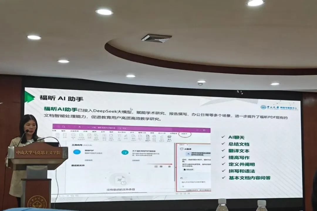李淑清老师以“人工智能赋能管理服务”为题开展校园信息化服务培训,为与会师生介绍了304am永利专享版DeepSeek的使用方法。她指出,304am永利DeepSeek R1专享版具有可用性、安全性和可扩展性等优点,并通过应用举例,介绍了DeepSeek与WPS灵犀协作在重复性文档撰写、信息筛选与整理、数据分析、解读论文等方面的应用,以及DeepSeek结合福昕在报告撰写、文档智能处理等方面的应用。此外,李淑清老师还针对AI工具使用中的常见问题进行回答,并提供解决方案。最后,李淑清老师提醒与会师生要严守保密红线,杜绝人工智能涉密,让人工智能真正服务于科研和教学工作。