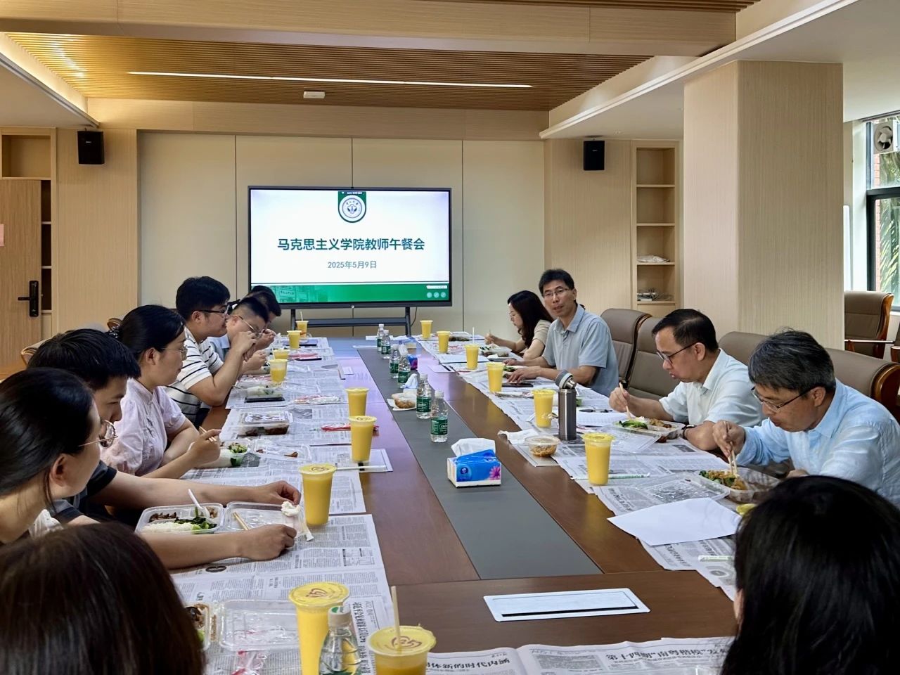 5月9日中午,马克思主义学院在文科楼410会议室举办教师午餐会。院长沈成飞、党委书记陈有志、副院长童建军、李珍,以及12位青年教师代表参会。