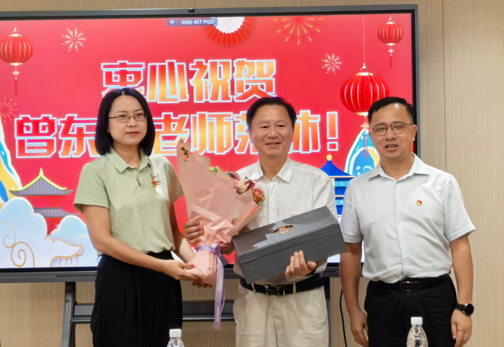 随后,教研室为曾东红老师举行荣休仪式。仪式现场温馨感人,学院领导、教研室代表和青年教师以不同方式,表达对曾老师的敬意与感激。