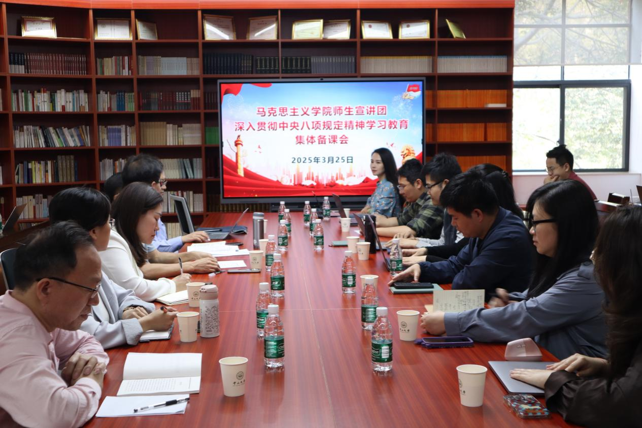 响应党中央关于2025年全国两会后至7月在全党开展深入贯彻中央八项规定精神学习教育的部署,马克思主义学院迅速成立师生宣讲团,于3月和4月召开两次集体备课会。院长沈成飞对宣讲工作提出要求:内容上坚持规范性与灵活性统一,依据不同单位特性调整宣讲重点;理论阐释注重政治性与学理性交融,通过“四风”问题典型案例剖析深化理解;观点引用强调严谨性与可靠性,确保每一个案例都来源可溯。宣讲团通过“专题讲座+案例分析+互动研讨”的形式,打造一批优秀课件,系统解读中央八项规定的核心要义与实践要求。