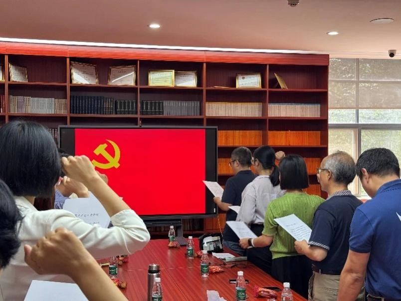 在鲜红的党旗下,朱贞等七位6月份入党的教师迎来了意义非凡的“政治生日”。入党二十周年的朱贞同志领誓,全体党员庄严举起右拳,重温了入党誓词。铿锵有力的誓言在会场回荡,每位党员再次接受了精神洗礼,进一步强化了党员身份意识和责任担当。大家纷纷表示,要将这份坚定的政治信念转化为教书育人的实际行动,在教学科研工作中践行初心使命。