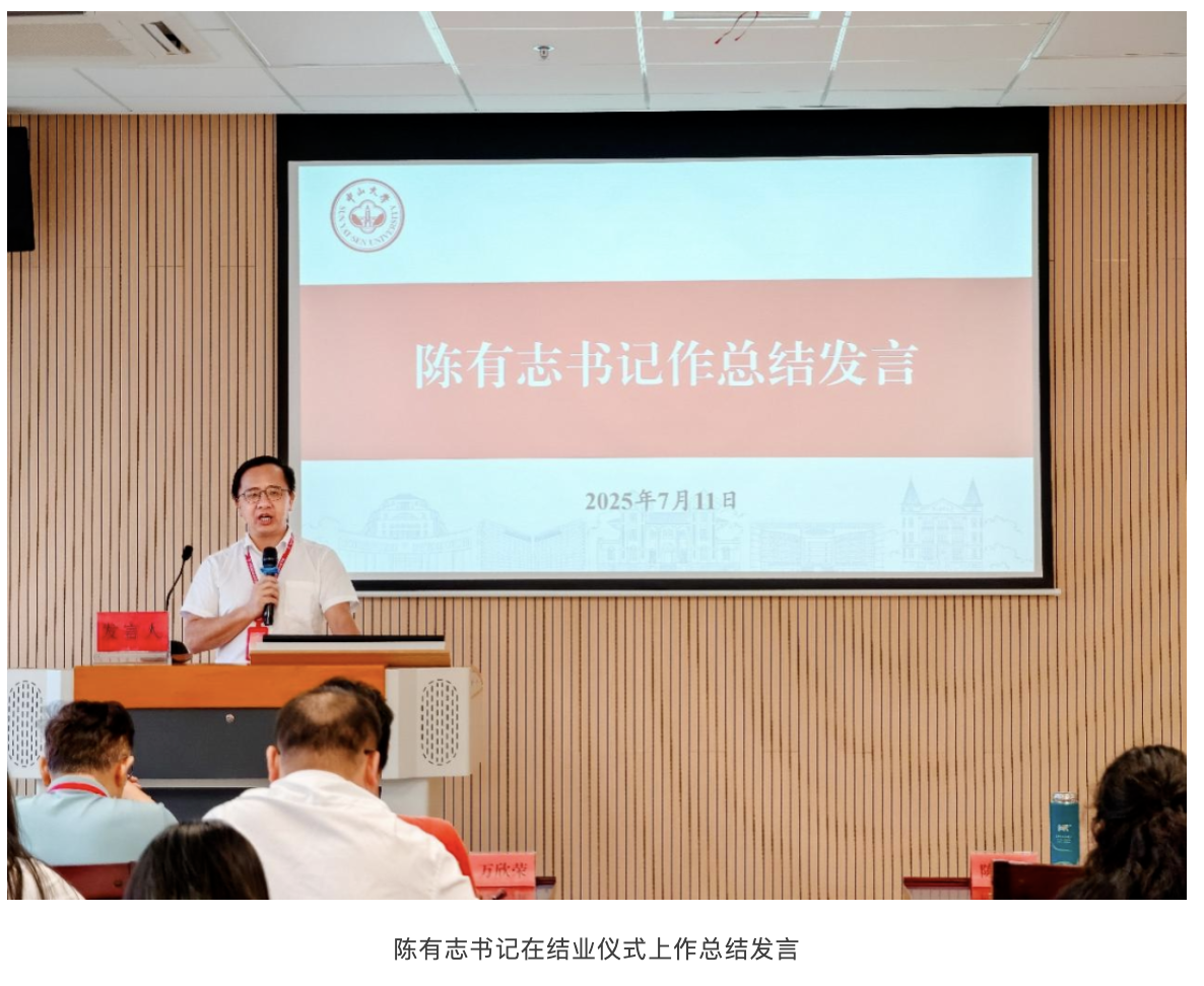 11日下午,研修班举行结业仪式。仪式由党政办公室主任黄孟邻主持,学员代表袁清瑞、拱岩颜分享了学习体会和收获,袁文华代表全班作学习总结汇报。陈有志在总结发言中勉励学员们坚定理想信念,提升理论素养,将学习成效转化为推动思政课改革创新的思路和举措;坚持为党育人、为国育才,为建设教育强国、推进中国式现代化作出新的更大贡献。本次研修在《304am永利校歌》的旋律中圆满结束。