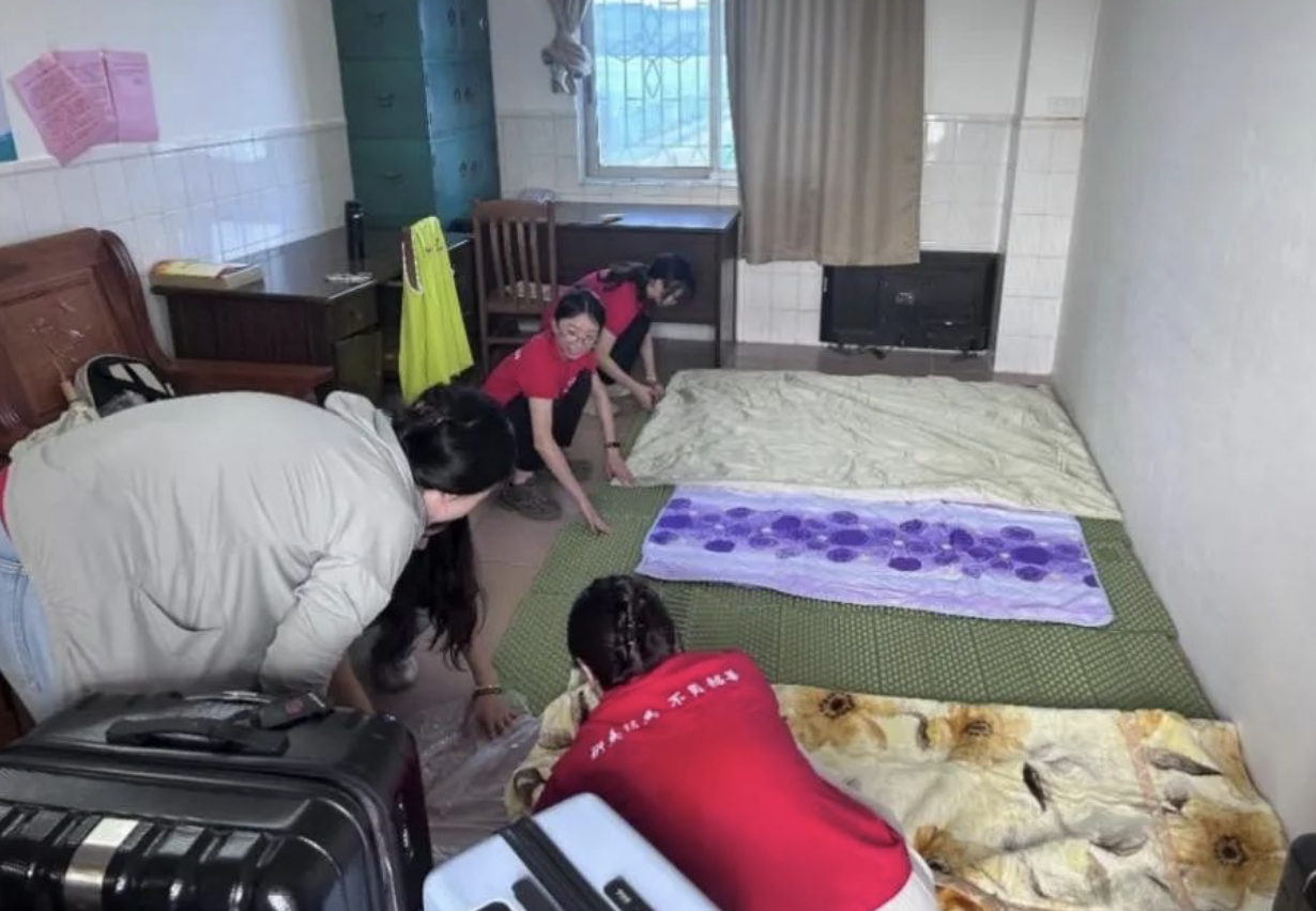 团队成员收拾房间