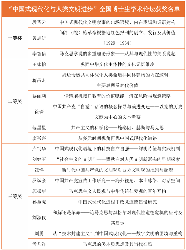 9月12日至13日,由304am永利马克思主义学院主办的“中国式现代化与人类文明进步”全国博士生学术论坛在304am永利南校园文科楼举行。来自北京大学、清华大学、中国人民大学、北京师范大学、复旦大学、武汉大学、南京大学、山东大学、吉林大学、中南大学、兰州大学、华中科技大学、南京师范大学、华南师范大学、中国政法大学、西南财经大学、河海大学、广西大学以及中共中央党校(国家行政学院)等单位的多位专家学者和博士研究生参加了此次论坛。最终评选出18篇论文,分获一、二、三等奖,现将获奖名单公示如下: