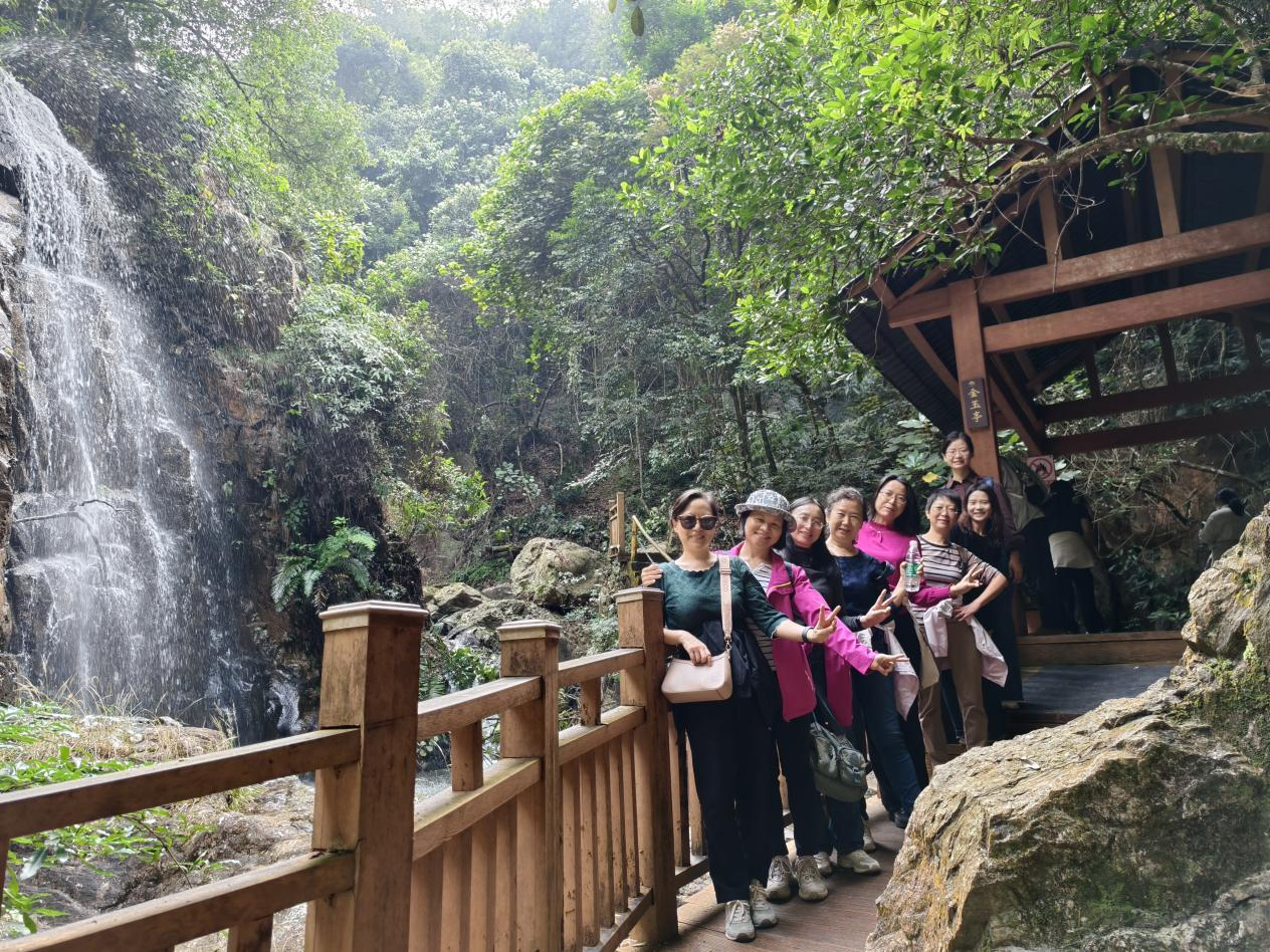 上午8时,大巴载着一路欢声笑语驶向肇庆黄金沟。这片位于鼎湖区凤凰镇的森林旅游景区,坐拥“世界长寿之乡”的清新空气与秀丽风光,以溪瀑探险为特色。大家沿溪溯行,水声潺潺相伴,绿意环绕周身。踏上悬空的玻璃桥,俯瞰谷壑幽深;尝试天然滑道,体验速度与微风交融的畅快。在亲近自然中,身心得以舒展;于挑战自我的片刻,更添一份从容与信心。