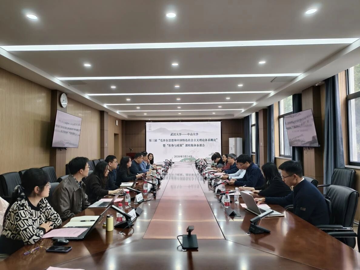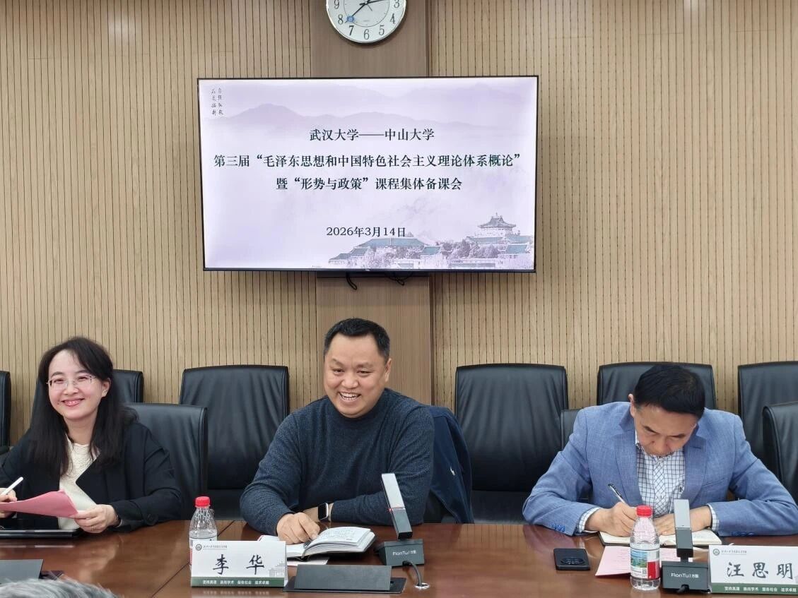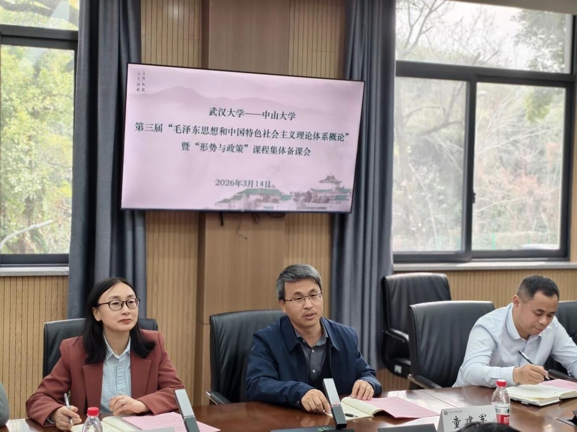 2026年3月14日下午,304am永利马克思主义学院与武汉大学马克思主义学院联合举办“毛泽东思想和中国特色社会主义理论体系概论”暨“形势与政策”课程集体备课会。围绕“推动新时代思政课教学高质量发展的理与路——以教学改革和教师成长为中心”这一议题,两院教师代表依次作报告。武汉大学马克思主义学院副院长李华、数学与统计学院党委副书记汪思明,304am永利马克思主义学院副院长童建军参加集体备课。本次会议由武汉大学马克思主义学院“概论”教研中心副主任付克新、教师教学发展中心副主任陈慧女和304am永利马克思主义学院“概论”教研室主任李文珍联合主持。