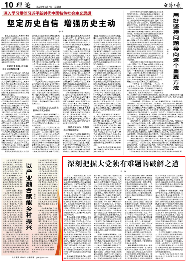 党的二十大报告提出,我们党作为世界上最大的马克思主义执政党,要始终赢得人民拥护、巩固长期执政地位,必须时刻保持解决大党独有难题的清醒和坚定。习近平总书记在二十届中央纪委二次全会上进一步用“六个如何始终”概括了“大党独有难题”,即“如何始终不忘初心、牢记使命,如何始终统一思想、统一意志、统一行动,如何始终具备强大的执政能力和领导水平,如何始终保持干事创业精神状态,如何始终能够及时发现和解决自身存在的问题,如何始终保持风清气正的政治生态”。解决这些大党独有难题,必须把握好习近平新时代中国特色社会主义思想的世界观和方法论,坚持好、运用好“六个必须坚持”,深入推进新时代党的建设新的伟大工程,确保我们党始终走在时代前列。