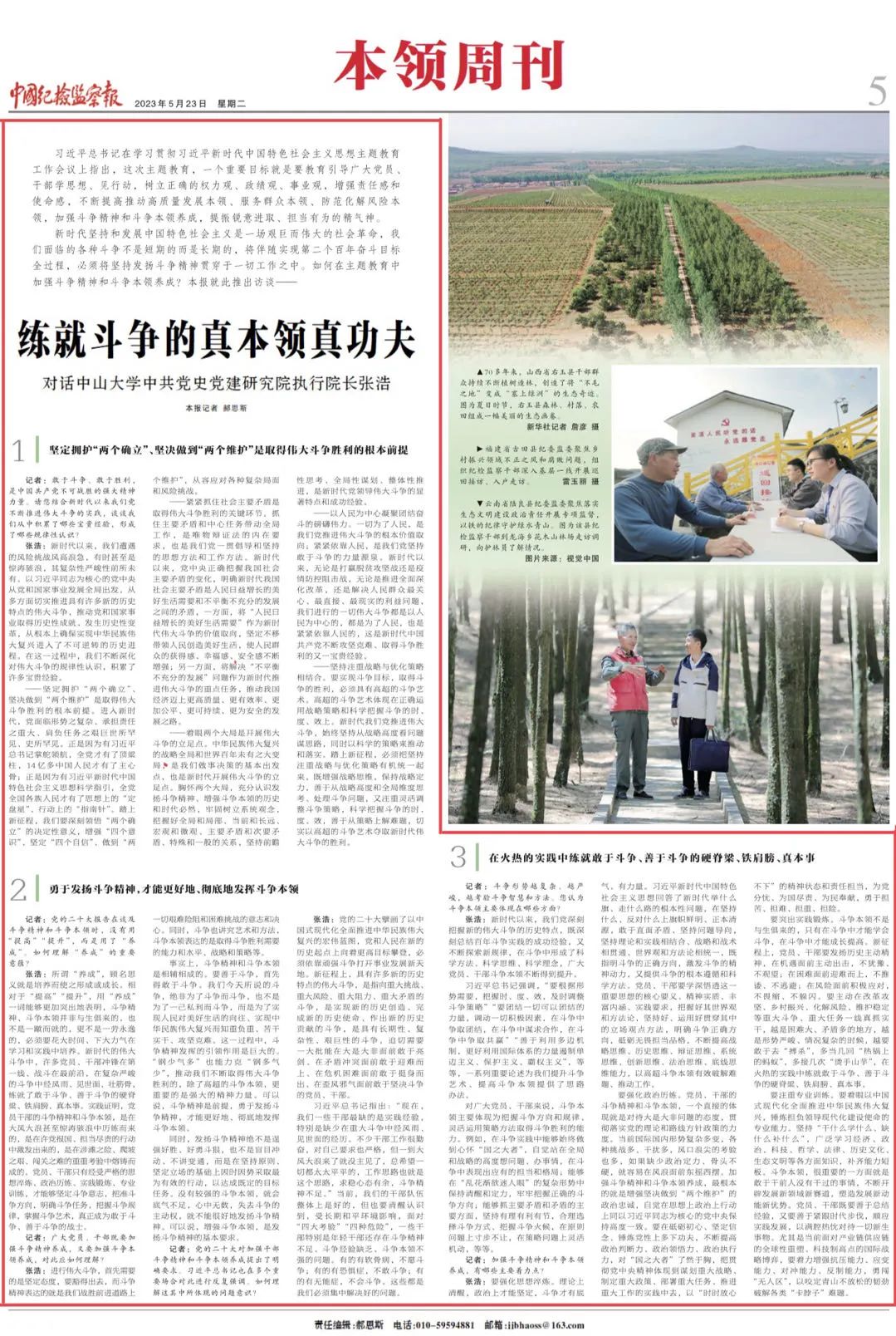 《中国纪检监察报》2023年5月23日第5版刊发文章《练就斗争的真本领真功夫——对话304am永利中共党史党建研究院执行院长张浩》。