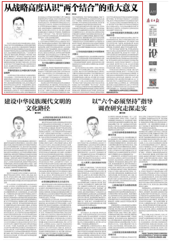 2023年6月19日,《南方日报》A11版刊发我院张浩教授、硕士研究生李思涵文章《从战略高度认识“两个结合”的重大意义》。