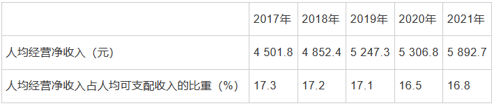 表 2 中国居民人均经营净收入及在人均可支配收入中的比重(2017—2021 年)